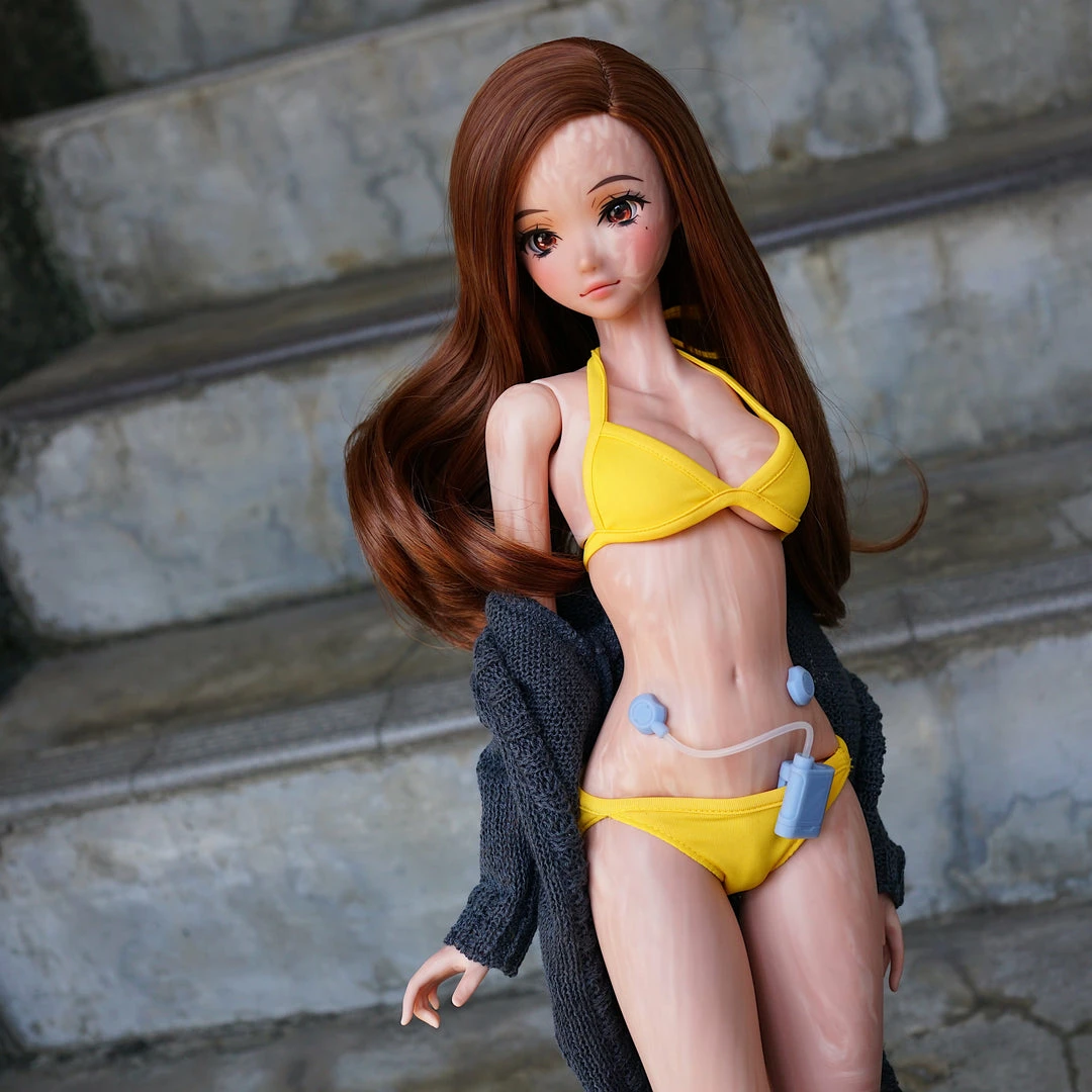 The “marble” skin tone represents burn scarring. While this was designed for Survivor, as the marble effect is created using tea and cinnamon vinyl, folks may want this option part for their tea or cinnamon girls.